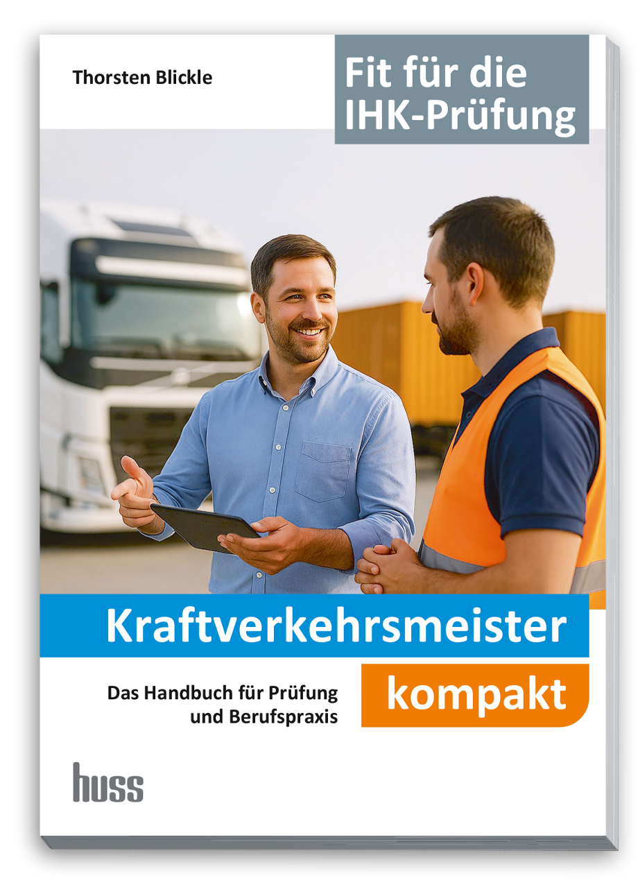 Der Güterkraftverkehr steht vor umfassenden Veränderungen: Verschärfte gesetzliche Vorgaben, technische Weiterentwicklungen und die fortschreitende Digitalisierung prägen die betrieblichen Abläufe. Damit wächst der Bedarf an qualifizierten Fach- und Führungskräften, die Fuhrparks sicher, effizient und rechtskonform führen. Das gerade im HUSS-VERLAG erschienene Handbuch bietet eine kompakte, praxisnahe Grundlage für angehende Kraftverkehrsmeister sowie für Praktiker in der Fuhrparkverwaltung. Es wurde gezielt für die Vorbereitung auf die IHK-Prüfung konzipiert und orientiert sich am aktuellen Rahmenlehrplan. Das Werk verbindet fundiertes Fachwissen mit klar strukturierten Praxisbezügen und enthält zahlreiche Übungsaufgaben zur Vertiefung des Lernstoffs.